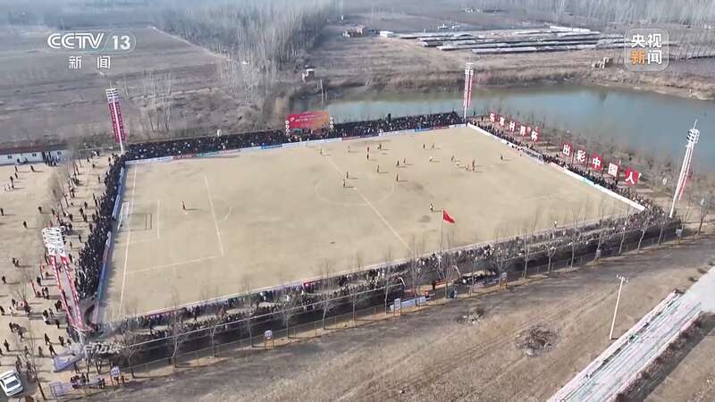 大年初四,江苏徐州市沛县鹿楼镇的七堡、八堡村正在进行一场足球赛。标准足球场的四周坐满了人,先来的人在看台上找到最佳看球位置,很多人自带马扎、板凳,还有不少人见缝插针地找地方。这些观众大多是来自附近乡村的村民,眼看场上球员传丢了球,他们也是跟着着急。球赛现场坐下来,身旁的大爷大妈就能告诉你什么是越位、什么是犯规。