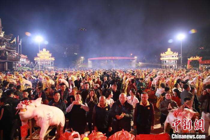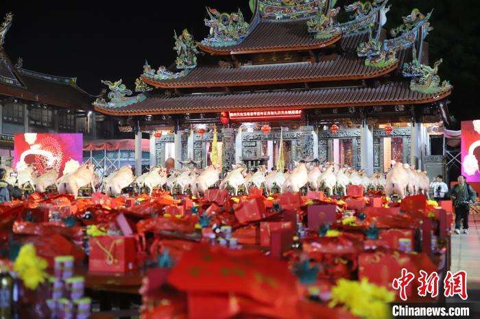 2月17日(农历正月初八)23时,伴随着子时的钟声响起,天宝镇珠里村玉尊宫、台湾宜兰草湖玉尊宫就开始同步举行“天公诞”祭拜仪式。两岸民众以同样的方式共同“拜天公”,祈求新的一年风调雨顺,国泰民安。
