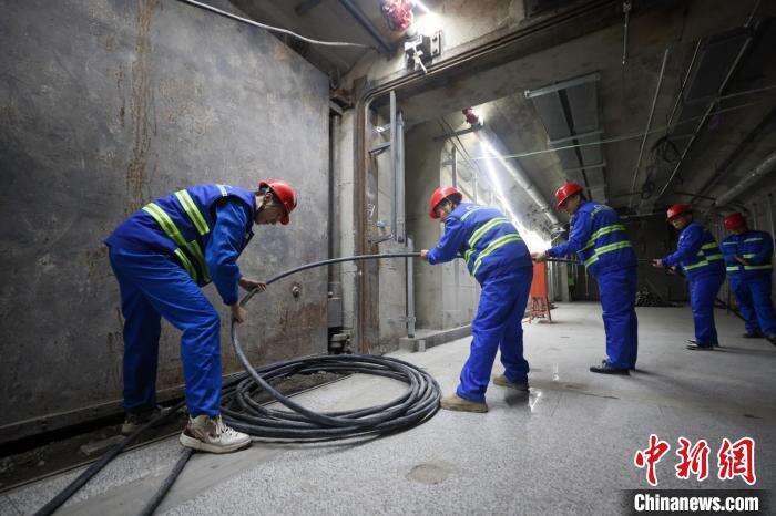 中新网北京2月20日电 (记者 徐婧)20日,在北京地铁12号线三元桥站,施工人员正在进行换乘厅的装修施工。记者从北京市重大项目办和京投轨道公司获悉,北京在建地铁85个土建标段、35个机电设备标段节后快速推动复工复产,为实现一季度投资建设任务“开门红”和年度开通任务目标创造有利条件。