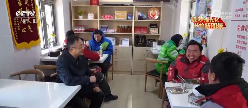 春节期间,大家在合家欢聚的时候,不少外卖、快递小哥还坚守岗位,保障着群众的正常生活。中午时分,一些外卖小哥送完餐就赶紧到附近的工会驿站吃口热乎饭,全国政协委员粟斌也趁着这个时候来到驿站走访调研。