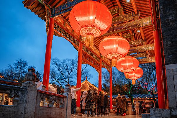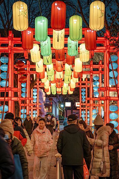 2024年2月19日,济南,第43届花灯会以“龙腾盛世 泉甲天下”为主题,在园区布置大型灯组40多个,加上2.5万余米LED灯带的辉映,让游客徜徉于五彩缤纷的梦幻世界,感受新年欢乐祥和的节日气氛。