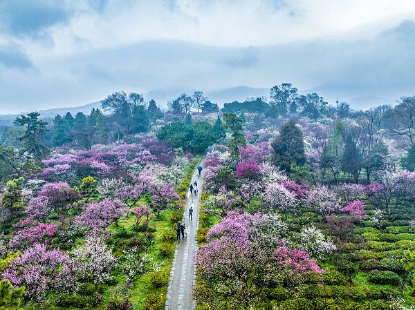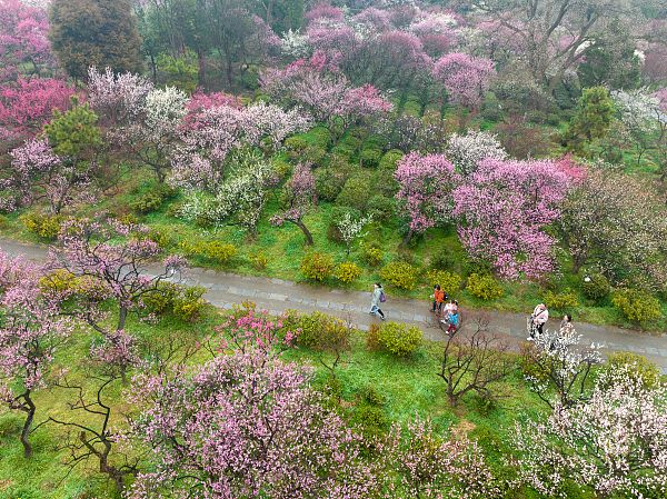 2024年2月19日,游客在南京梅花山游览赏梅。