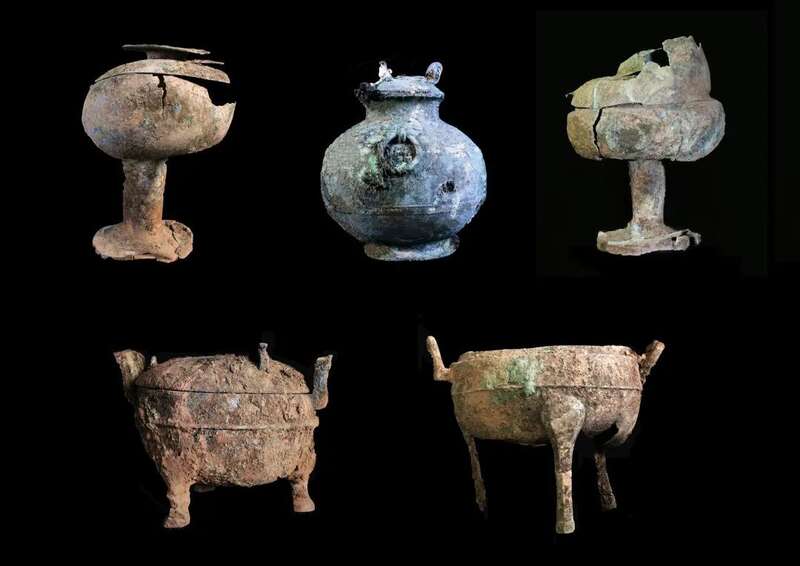 △ M2出土铜罍、盉、盘、斝、爵(M2 :1、2、23、3、8)