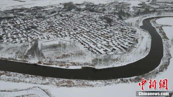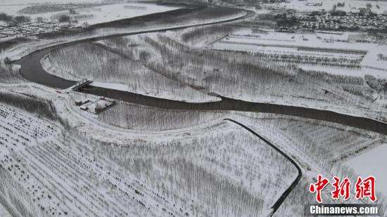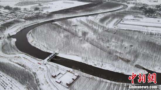 一场春雪过后,大运河河北沧州南皮段被皑皑白雪覆盖。放眼望去,雪中运河犹如一幅水墨画。图为2月21日,航拍下的大运河沧州南皮段。(文/王天译)