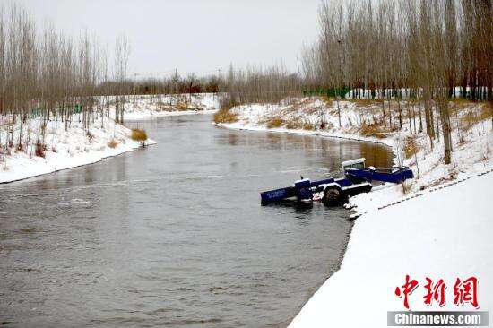 2月21日,大运河南皮段,一艘清草船停靠在岸边。