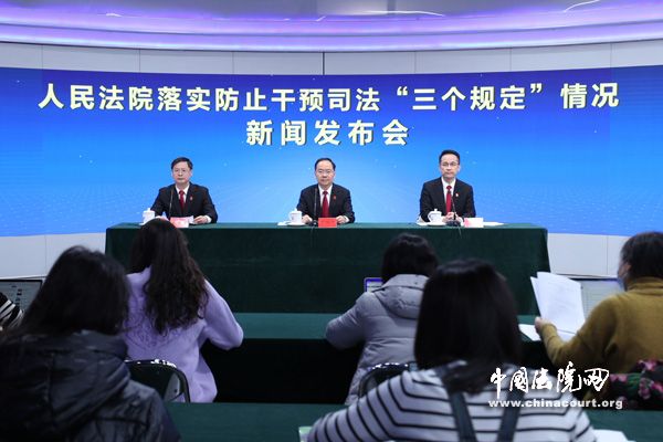廖向阳介绍说,为贯彻落实党的十八届四中全会精神,切实排除各方面对司法活动的违规干预、不当干扰,确保公正司法,2015年,中央办公厅、国务院办公厅印发《领导干部干预司法活动、插手具体案件处理的记录、通报和责任追究规定》;中央政法委印发《司法机关内部人员过问案件的记录和责任追究规定》;最高人民法院、最高人民检察院、公安部、国家安全部、司法部联合印发《关于进一步规范司法人员与当事人、律师、特殊关系人、中介组织接触交往行为的若干规定》,即防止干预司法“三个规定”。