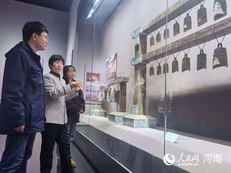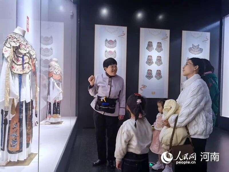孙宝菊向游客介绍花鸟纹刺绣云肩。