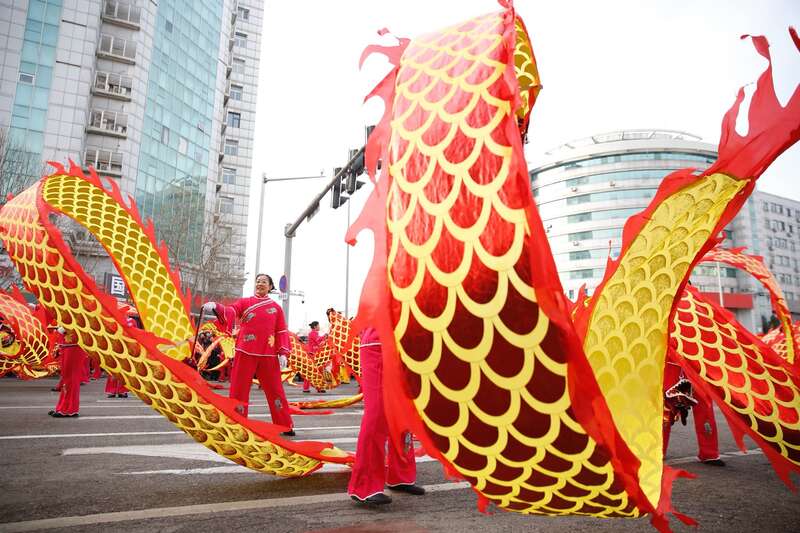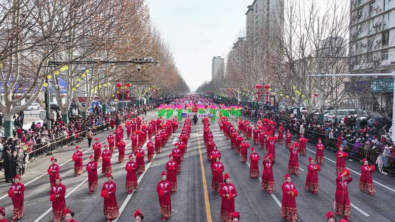 京津冀各地也推出各类活动欢庆佳节。在北京海淀区苏家坨镇,欢快的锣鼓响彻云霄,苏家坨镇“龙腾狮跃闹元宵”花会踩街活动吸引着周边居民共庆元宵。