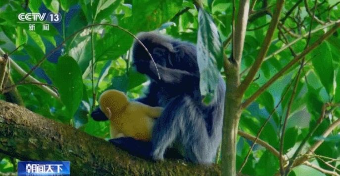 原来,把“小金猴”宝宝抢来抢去,是菲氏叶猴家族独特的育儿方式。菲氏叶猴聚群而居,在猴群里,每个家庭成员都想和“小金猴”有更多亲密接触,这才有了我们眼前的独特场景。