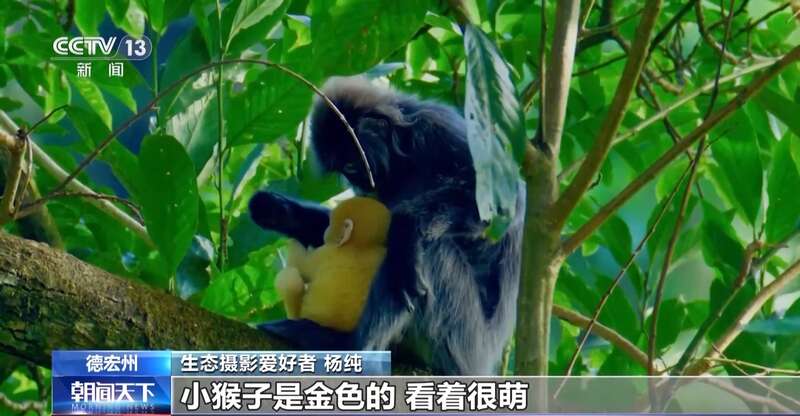 日前,记者在云南德宏的一片热带雨林中偶遇菲氏叶猴猴群,近距离拍摄到一群成年猴争着带“小金猴”的温馨场景。