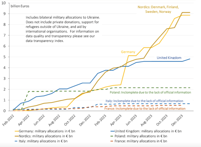 根据德国联邦外交部公布的数据,截至2024年1月31日,德国已向乌克兰提供了价值280亿欧元的援助。从金额上来看,德国是继美国之后向乌克兰提供支援第二多的国家。德国媒体援引政府消息人士的说法称,2025年德国财政预算的缺口将至少达到130亿欧元。尽管如此,联邦政府仍希望大幅增加2024年对乌克兰的军事援助预算。眼下,今年的援助预算为80亿欧元,而非最初估计的40亿欧元。