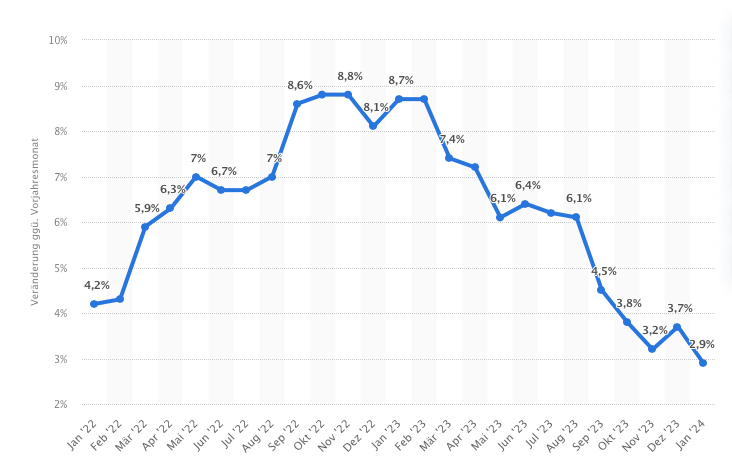 随着能源价格的暴涨,原材料成本的上升也成为推动通货膨胀的主要因素之一,对民众的日常生活产生了深远的影响,如家庭取暖、交通费用、日用品采购等开支都显著增加。生活成本更高的结果是人们的购买力明显受到限制。根据德国经济研究所的报告,民众在2022年和2023年累计减少消费4000亿欧元——这相当于每个德国居民减少消费了4800欧元。