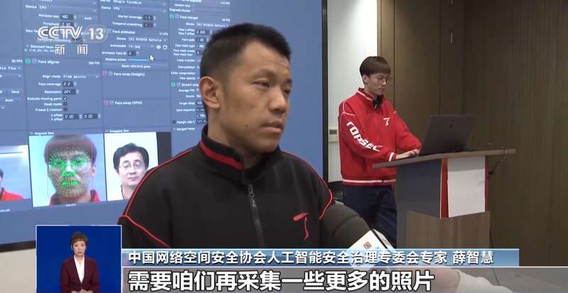 中国网络空间安全协会人工智能安全治理专委会专家 薛智慧:如果要实时点对点交流的话,需要再采集更多的照片,完了进行深度学习算法模型的训练,训练出来这个模型以后灌到咱们这个视频里去,就可以做实时的变化跟转换了。这种情况下,就可以做到实时的变脸。声音的交流也可以,需要预先采集一些咱们目标人群当中的声音,然后进行模型的训练,能够把目标人群的声音还原出来。