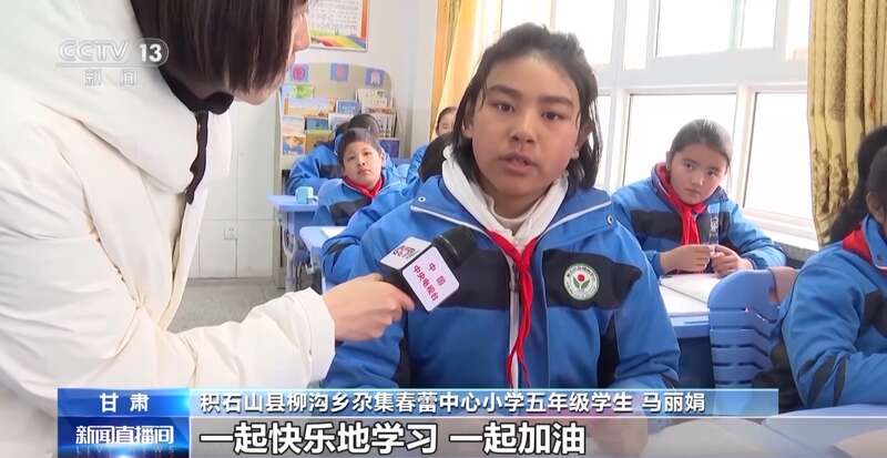 总台记者 马丽:早上7点50分。在积石山县柳沟乡尕集春蕾小学门口,学生们络绎不绝地进入校园。据了解,许多学生的书包、文具是各地爱心人士捐赠的。来自全国各地的温暖,绘就成了充满希望的新图景。