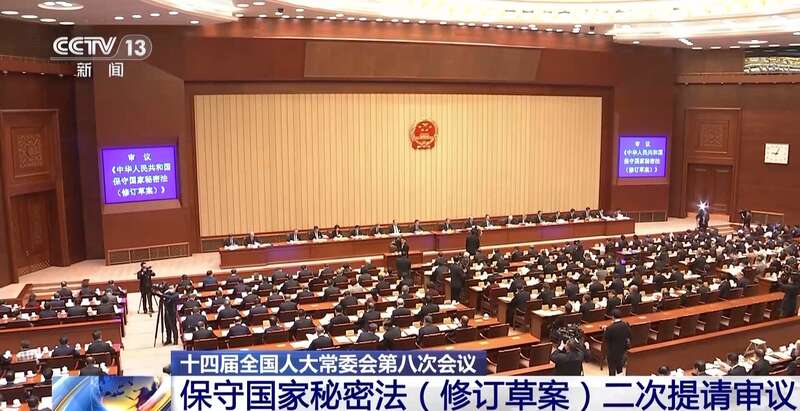 十四届全国人大常委会第八次会议今天(26日)上午在北京人民大会堂举行第一次全体会议。保守国家秘密法(修订草案)二审稿提请审议。草案二审稿完善确定保密事项范围的原则,进一步规范定密权限等内容。