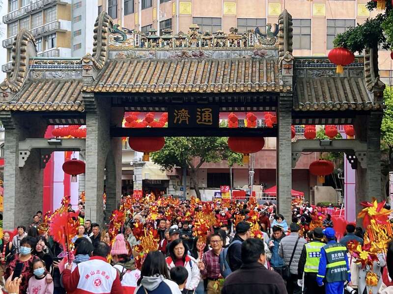 “‘行通济’已有300多年历史,是本地最具特色和影响力的元宵节活动,也是广东省级非物质文化遗产。”佛山市禅城区文化广电旅游体育局局长刘芳说,每到元宵,家家户户手持生菜、风车、风铃等由北到南走过通济桥,寓意消除烦恼、顺风顺水。