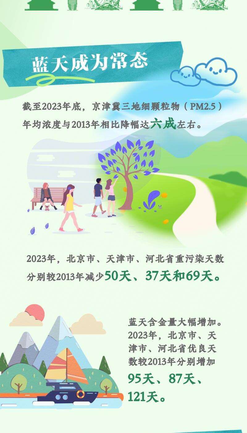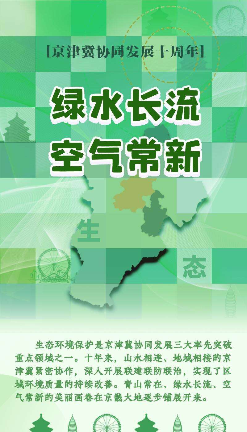 生态环境保护是京津冀协同发展三大率先突破重点领域之一。十年来,山水相连、地域相接的京津冀紧密协作,深入开展联建联防联治,实现了区域环境质量的持续改善。青山常在、绿水长流、空气常新的美丽画卷在京畿大地逐步铺展开来。