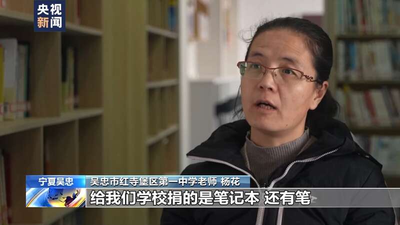 吴忠市红寺堡区第一中学老师 杨花:给我们学校捐的是笔记本、笔、尺子,还有胶带之类学生平常用的这些。最暖心的就是捐了20双手套,专门说要捐给我们班的。这孩子能够从初中上到高中、大学,他一路走来,回来反哺学校,这种行为让我很震惊。因为这个行为是我们学校第一例。