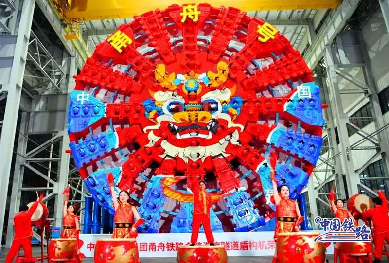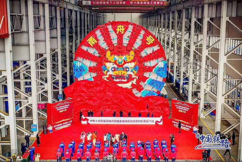 “甬舟号”盾构机全长135米,总重量4350吨,配备特制刀具308把,刀盘开挖直径14.57米,总装达到世界一流水平。