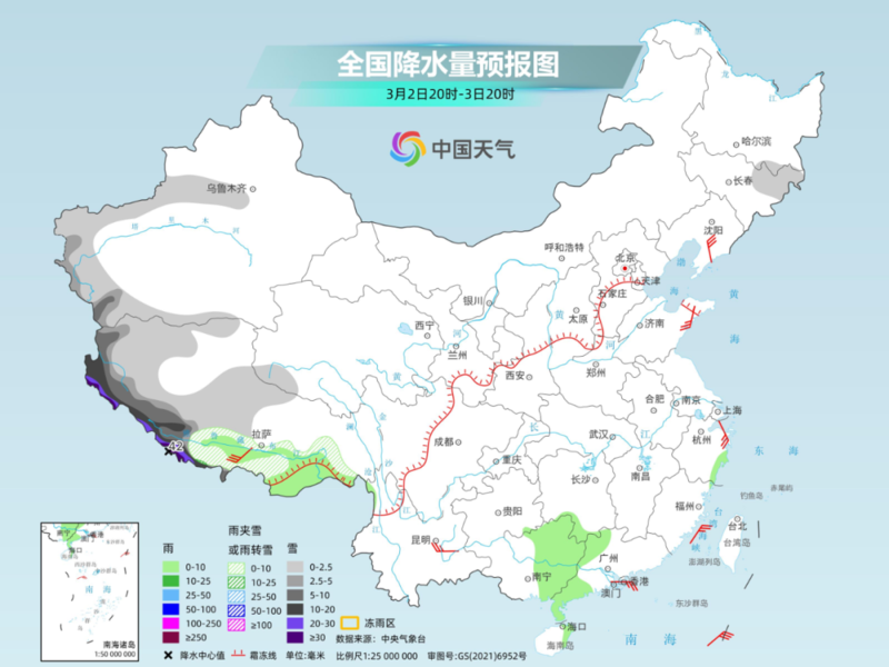从累计降雪量来看,西藏西部降雪量极端性强,而且在3日,西藏西部地面风力增大,可能会出现风吹雪。