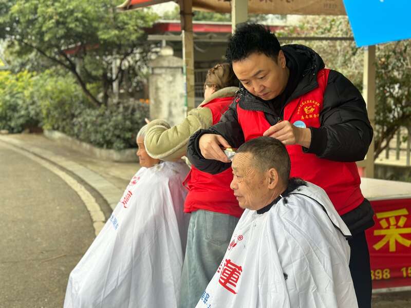 3月3日,四川省3·5学雷锋志愿服务省级示范活动现场,志愿者们为老人理发。刘胤衡/摄