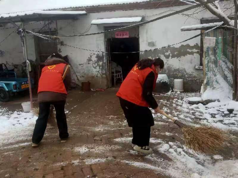 返乡大学生为孤寡老人清扫门前积雪。团界首市委供图