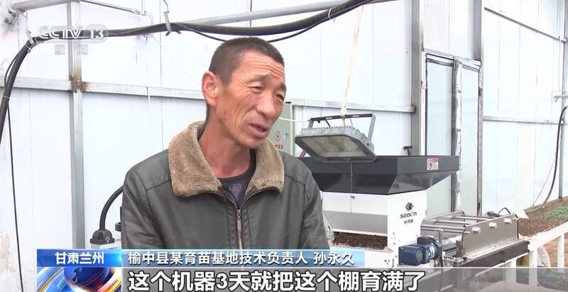 榆中县某育苗基地技术负责人 孙永久:这个机器3天就把这个棚育满了,节省了60%到70%的人工。