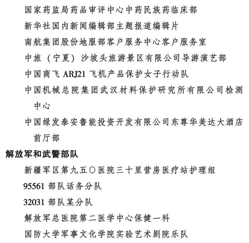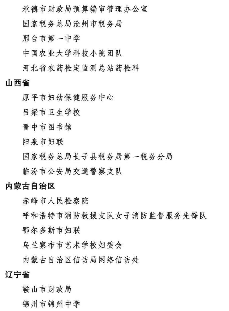 全国三八红旗集体名单