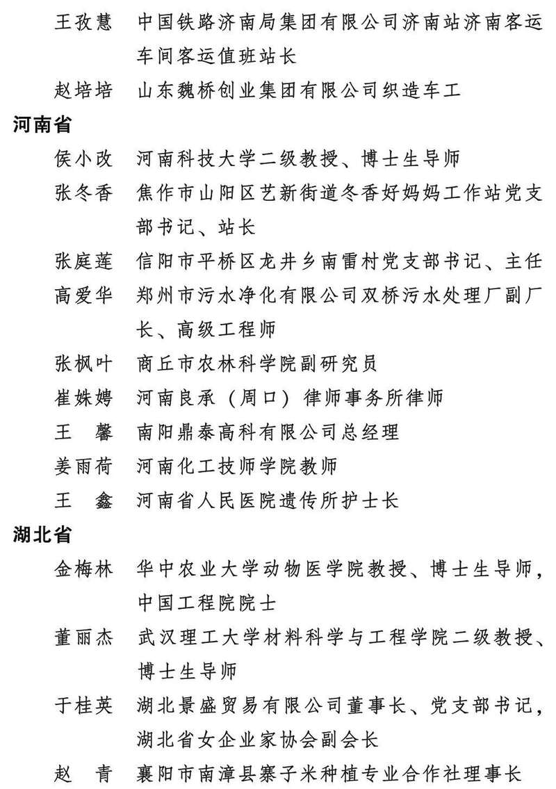 全国三八红旗手标兵名单
