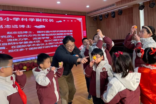 在教育“双减”背景下,浙江省温州市积极探索给科学教育做“加法”。2023年9月,温州市出台《新时代温州中小学科学教育实施方案》,启动科学教师队伍建设等六大行动,聘请百位科研工作者担任百所学校的科学副校长。根据中国科学院大学与温州的共建精神,首批百位科学副校长全部由国科温州研究院派出。赵志远正是广场路小学的科学副校长。