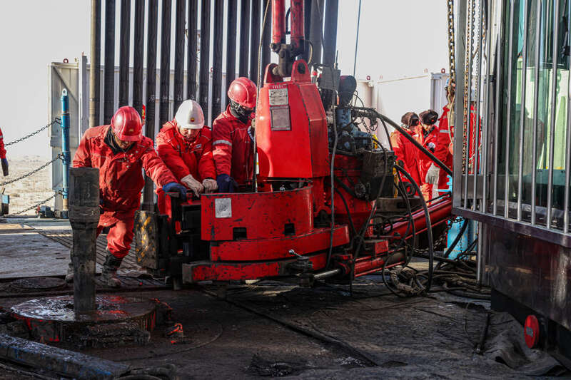 从地面到万米地下,深地塔科1井的钻探不仅要面对复杂多变的地质构造,还要跨越地下“万重崇山”,穿越多套不同岩性、不同压力系统的岩层。面对井下的极限温度压力环境,中国石油塔里木油田、西部钻探、宝石机械等多家单位开展联合攻关,自主研制了全球首台12000米特深井自动化钻机,创新研发了220摄氏度超高温钻井液、抗高温螺杆、测斜等工艺技术,175兆帕特高压压裂车、压裂液装备完成生产研发并成功在现场试验,打造形成一批关键核心技术。