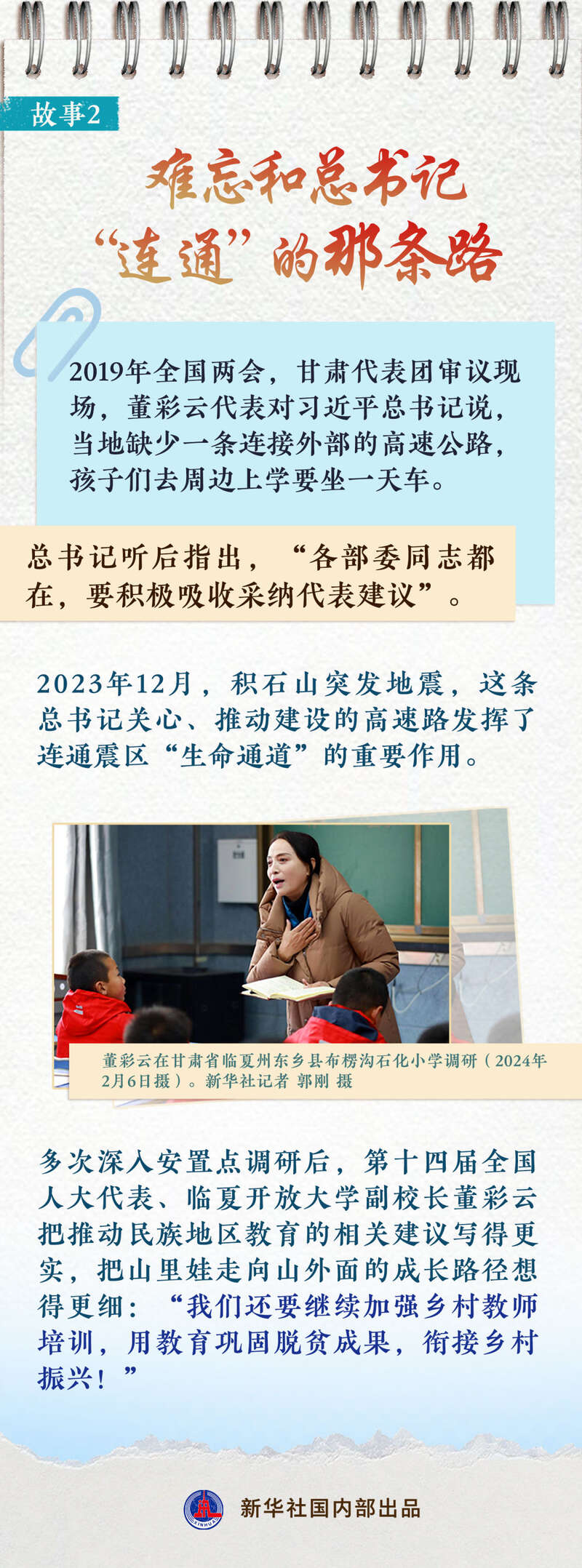 新华社3月2日播发通讯《总书记的嘱托激励我们一路向前——来自全国两会代表委员的心声》。全国两会前夕,新华社记者回访21位代表委员,听他们讲述履职故事,回望攻坚克难的奋斗足迹,传递人民群众的殷切期盼,描绘高质量发展新的蓝图,激荡民族复兴的火热情怀。记者从中选取一部分故事与大家分享。