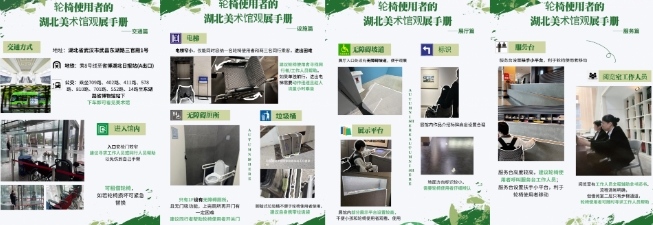 该团支部还联合了上海公益组织——特有深度聊天室,在湖北省美术馆举办了“一起去看展”志愿服务活动,邀请残障人士一同看展。在志愿现场,同学们与参展的残障人士行在一起,共同探索,相互交谈。为了给行动不便者提供更加合理舒适的参展建议,同学们也借用了馆内多余的轮椅,以轮椅使用者的身份进行并记录了观展体验,并在活动结束后对展馆的适老化和无障碍设计进行深入剖析,整理形成了“无障碍观展手册”,将其分享在网络平台上。手册详细描述了展馆中的无障碍设施、观展技巧以及注意事项,为各地的行动不便者提供了实用的参考。
