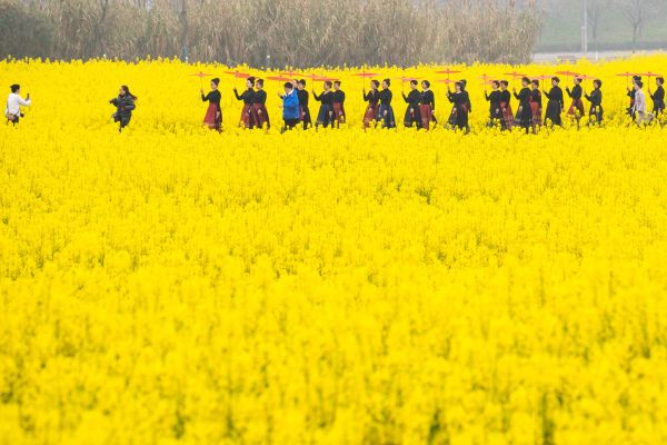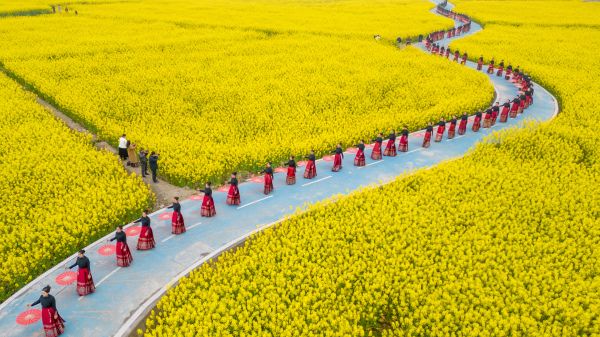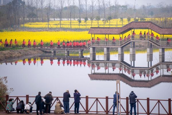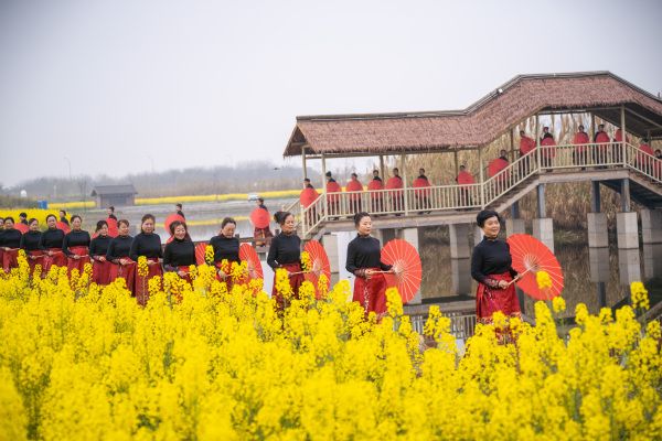 2024年3月4日,在“三八”国际劳动妇女节来临之际,来自眉山市老年大学一百多位汉服爱好者,相约眉山市彭山区千亩湿地公园油菜花海,带来一场赏心悦目的“汉服秀”表演 。汉服爱好者们穿梭在花海中婀娜漫步,与金黄的油菜花海交相辉映,形成了一道亮丽的风景线。