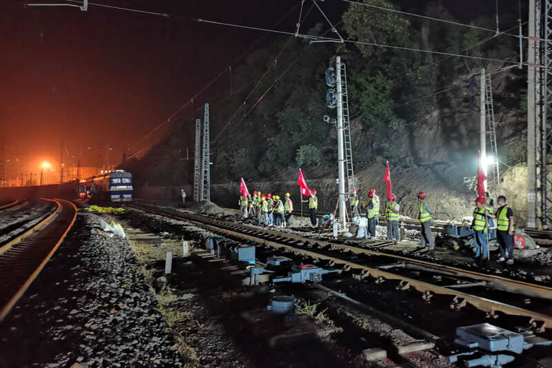 受强降雨影响,丰沙线铁路多处段落受损严重,导致列车滞留,人员物资进出困难,在接到丰沙线铁路紧急抢险通知后,青年突击队同项目抢险人员为赶往抢险管段蹚水前行,徒步15公里抵达丰沙线抢险管段,经过48小时连续作战,青年突击队同抢险队员完成8公里长的抢修管段,列车率先通过中铁北京局抢险管段,提前1天完成抢险任务。在大范围救援结束后,青年突击队对周边区域的受灾地段进行逐步清理,从南石洋大峡谷景区到清水河河道再到雁翅东路受洪水造成的道路塌方,一步步完成灾后修复。