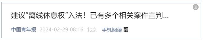 全国政协委员、全国总工会办公厅主任吕国泉,建议将离线休息权入法,减少劳动者出现“休而不息”的情况,从而更好地保障劳动者权益。
