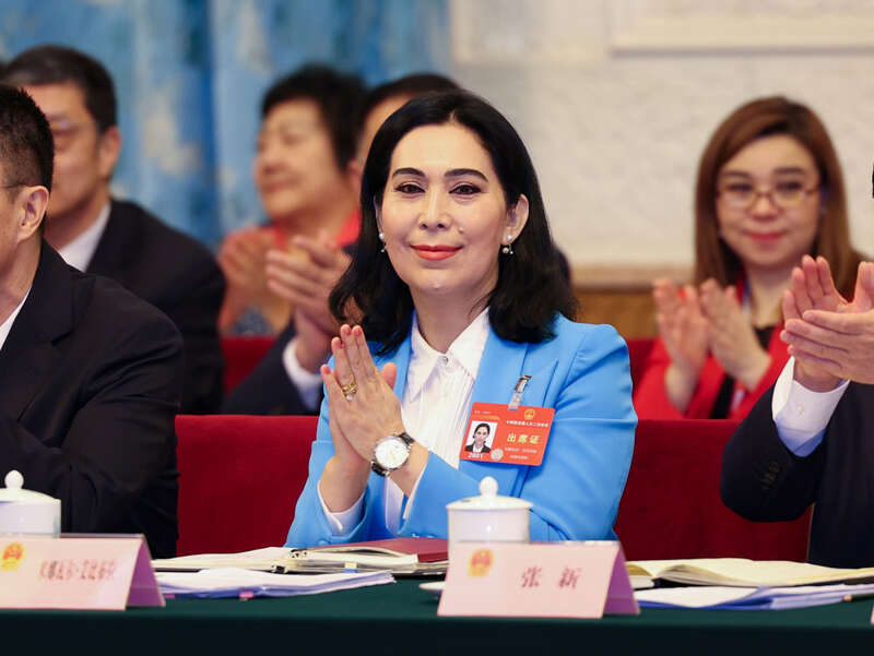 3月7日,米娜瓦尔·艾比布拉代表在十四届全国人大二次会议新疆代表团全体会议上。