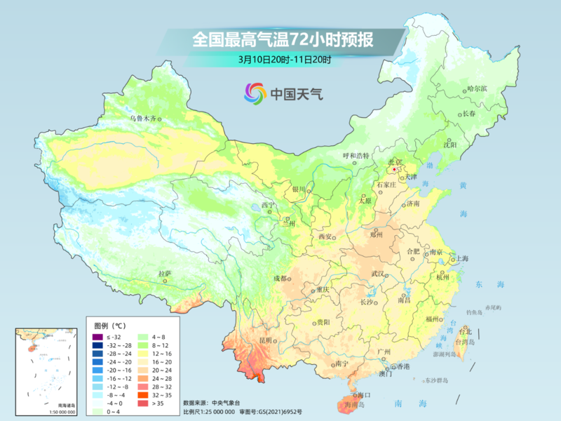 尤其北方大部地区升温幅度更大、速度更快。预计本周末到下周一前后,最高气温10℃线将北抬至东北地区南部,华北平原一带包括北京、天津、石家庄、济南、郑州最高气温将回升至15℃,甚至20℃上下。北方小伙伴可以脱下冬衣了。