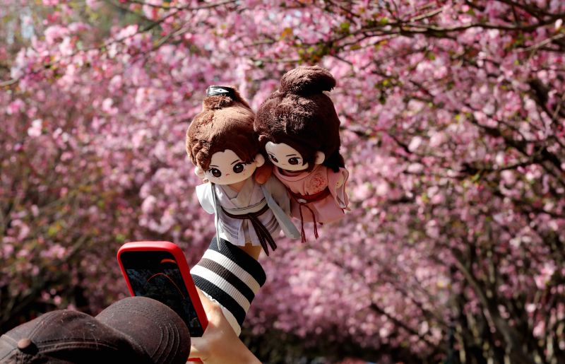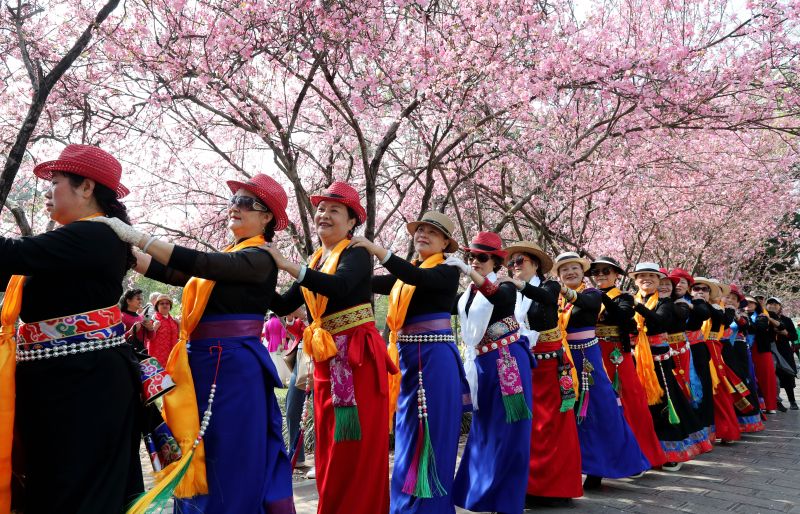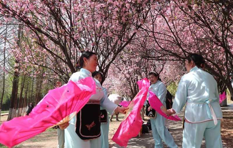 2024年3月8日,昆明,西华公园中垂丝海棠繁花似锦,粉若云霞春意浓,春花灿烂佳人俏,妇女同胞畅游花海,共赏春光。