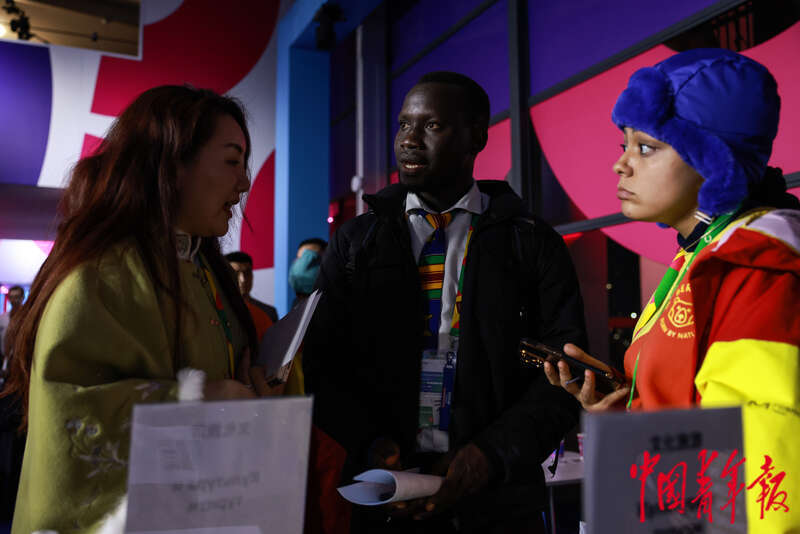 3月4日,俄罗斯索契,世界青年联欢节期间,“机遇中国”青年洽谈会上,中外青年代表相互交流。中青报·中青网记者 曲俊燕/摄