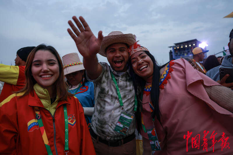 3月4日,俄罗斯索契,参加世界青年联欢节的委内瑞拉青年开心合影。中青报·中青网记者 曲俊燕/摄