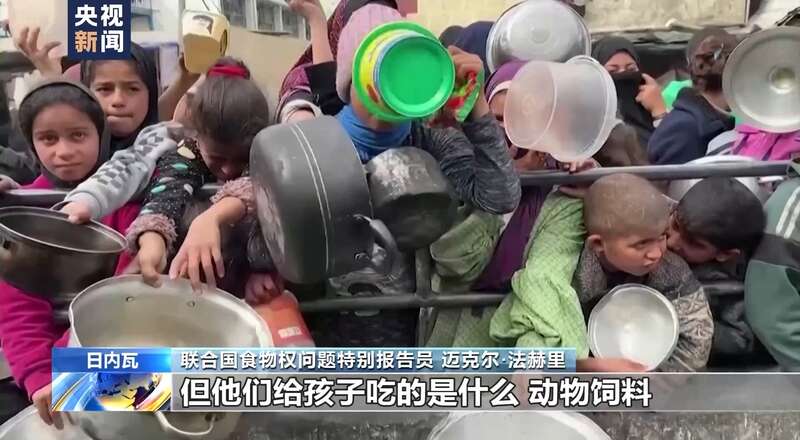 联合国食物权问题特别报告员 迈克尔·法赫里:在加沙地带很多人已经放弃吃饭,把食物留给孩子。但他们给孩子吃的是什么?动物饲料。他们给孩子喝什么水?脏水。这会让他们的孩子更容易生病。