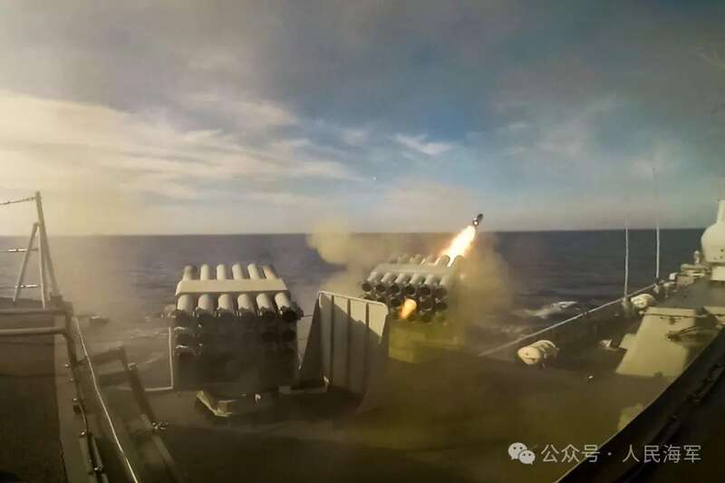 ▲海口舰发射干扰弹。王健 摄