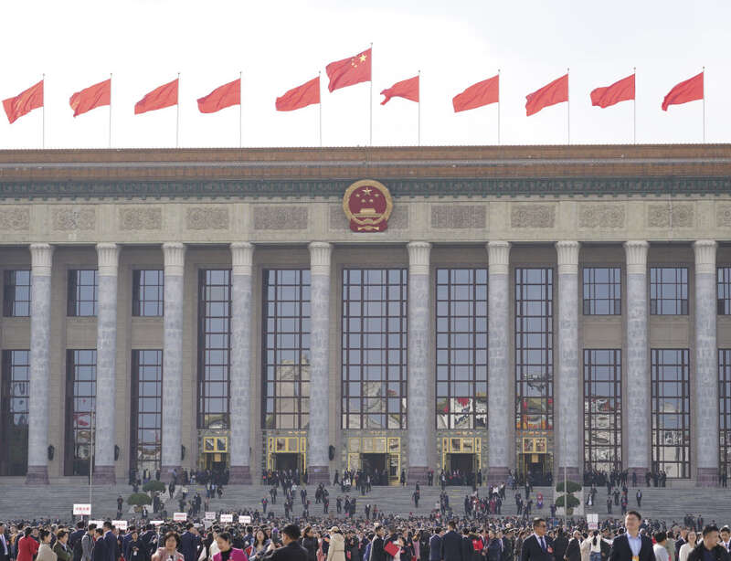 ↑3月10日,委员们走出人民大会堂。