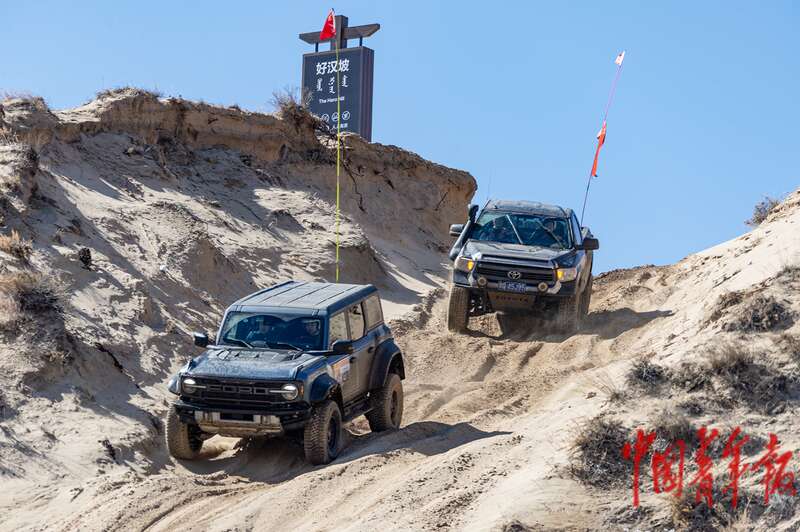 3月11日,参赛车辆在浑善达克2号沙地穿行,越过“好汉坡”。孙沐野/摄
