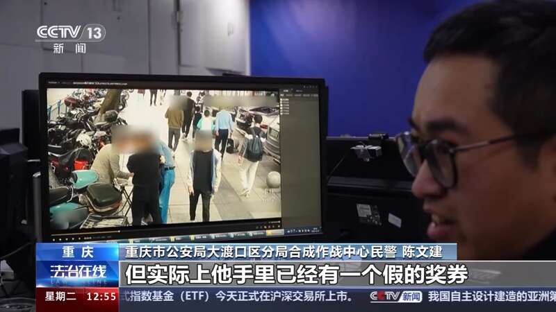 重庆市公安局大渡口区分局合成作战中心民警 陈文建:你看这个受害人现在是有点发现他们可能是诈骗的,现在他要刮开其他的奖票看一下,但是庄家是坚决不同意他把这个奖券拿走的,旁边的托儿就过来解围,怕这个老年人去报警之类的,就故意跟着他走一段,进行一定的疏导,防止他报警。