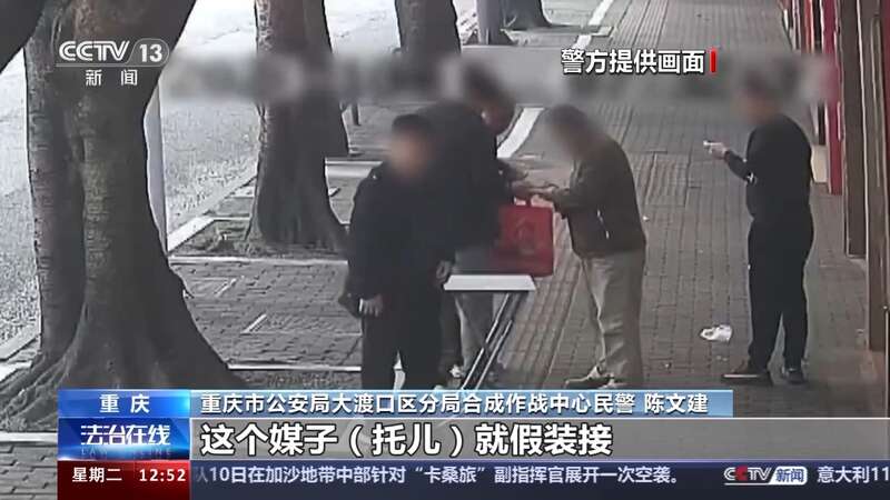 重庆市公安局大渡口区分局合成作战中心民警 陈文建:这四个就是嫌疑人,迎面走来一个行人,他看到这个行人以后,一边走一边就开始给他发金黄色的手表,这个假装接,这个嫌疑人就开始把桌子摆起来,准确吸引这个受害人,但是这个人感觉对他们这个诈骗没有意向,这几个人就开始转移下一个地方作案,桌子可以随时摆出来,流动性相当强,有时候一天要走两三个区域都有。