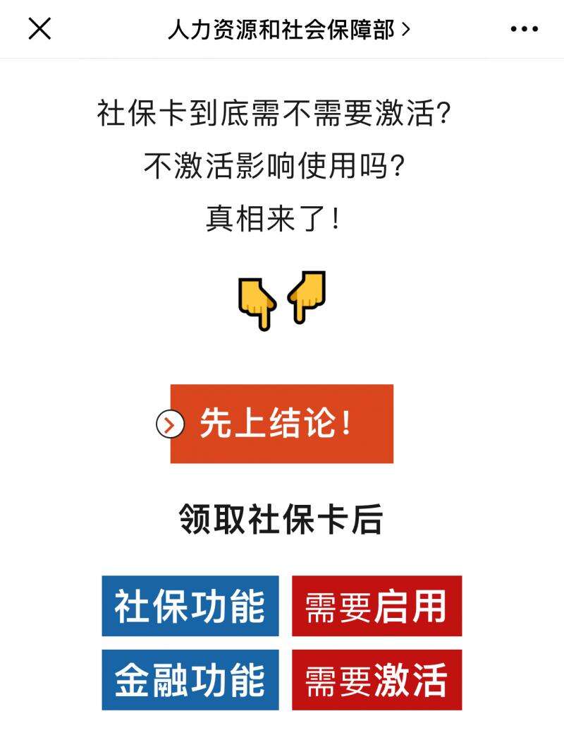 3月12日,#社保卡一定要记得激活#的话题再次上了热搜,引起不少市民一阵慌乱:“手上的卡没记得激活过,也一直正常可用。到底社保卡要不要激活啊?”北京青年报记者了解到,早在去年12月,人力资源和社会保障部官方微信公众号曾就此话题进行详细解释。简单说,社保卡有两个功能,社保功能和金融功能。领取社保卡后,社保功能需要启用,金融功能需要去银行激活。目前,很多地区已实现首次用卡时同步启用社保功能。全国大部分地区也已实现在社保卡服务银行窗口同时完成社保功能启用和金融功能激活。
