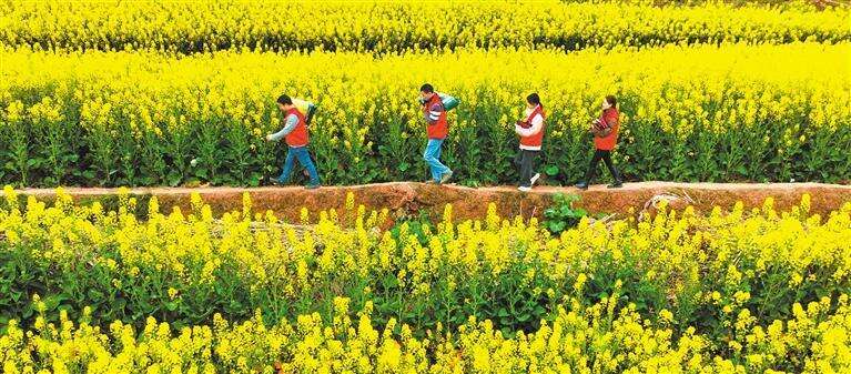 3月5日,四川仁寿县板桥镇青龙社区,志愿者正在运送春耕化肥。潘建勇摄(中经视觉)