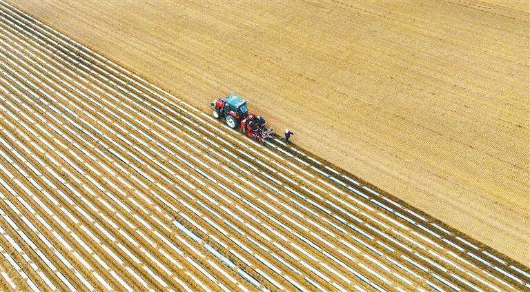 3月7日,山东广饶县李鹊镇,农民在田间播种马铃薯。刘云杰摄 (中经视觉)